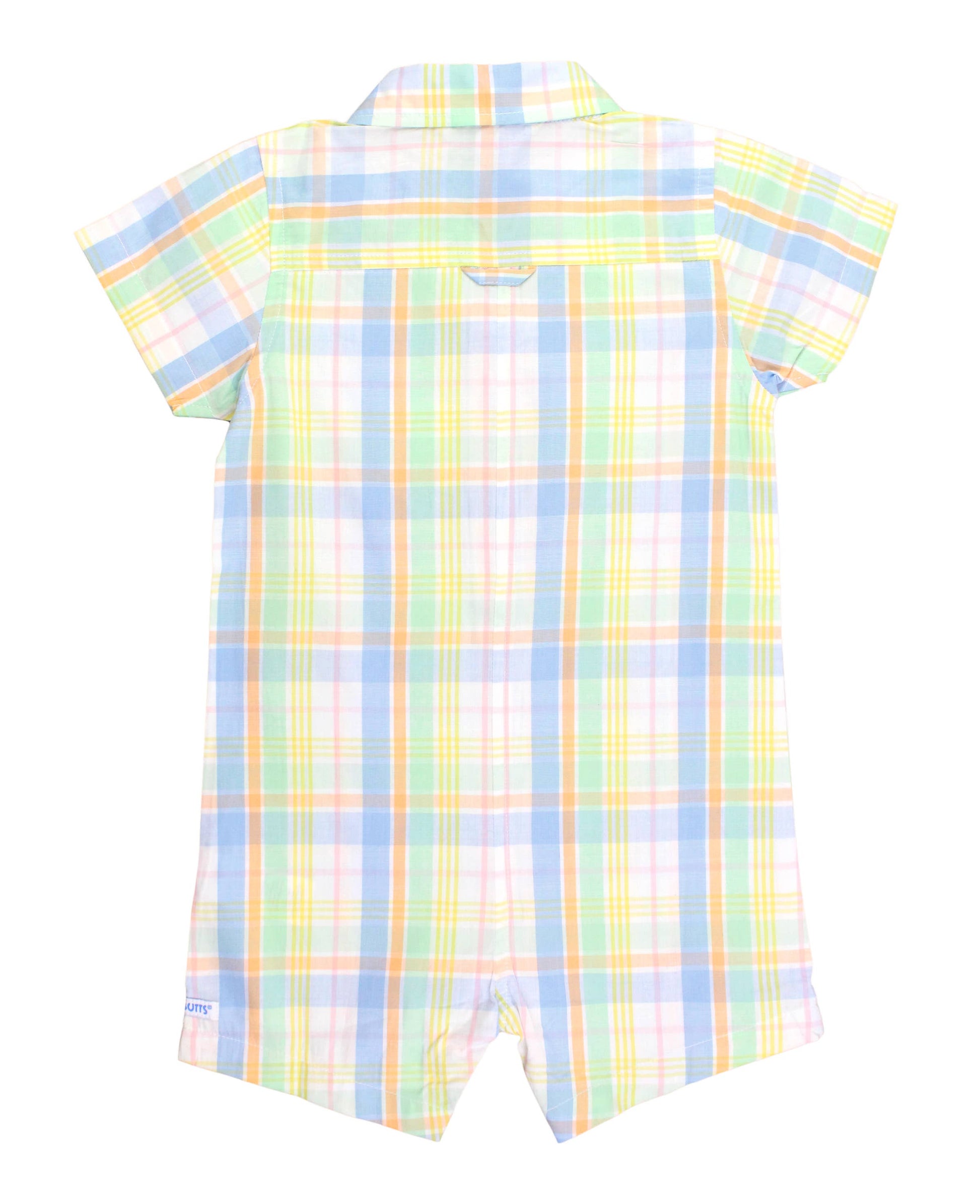 Baby Boys Clubhouse Rainbow Plaid Short Sleeve Woven Button-Up Romper