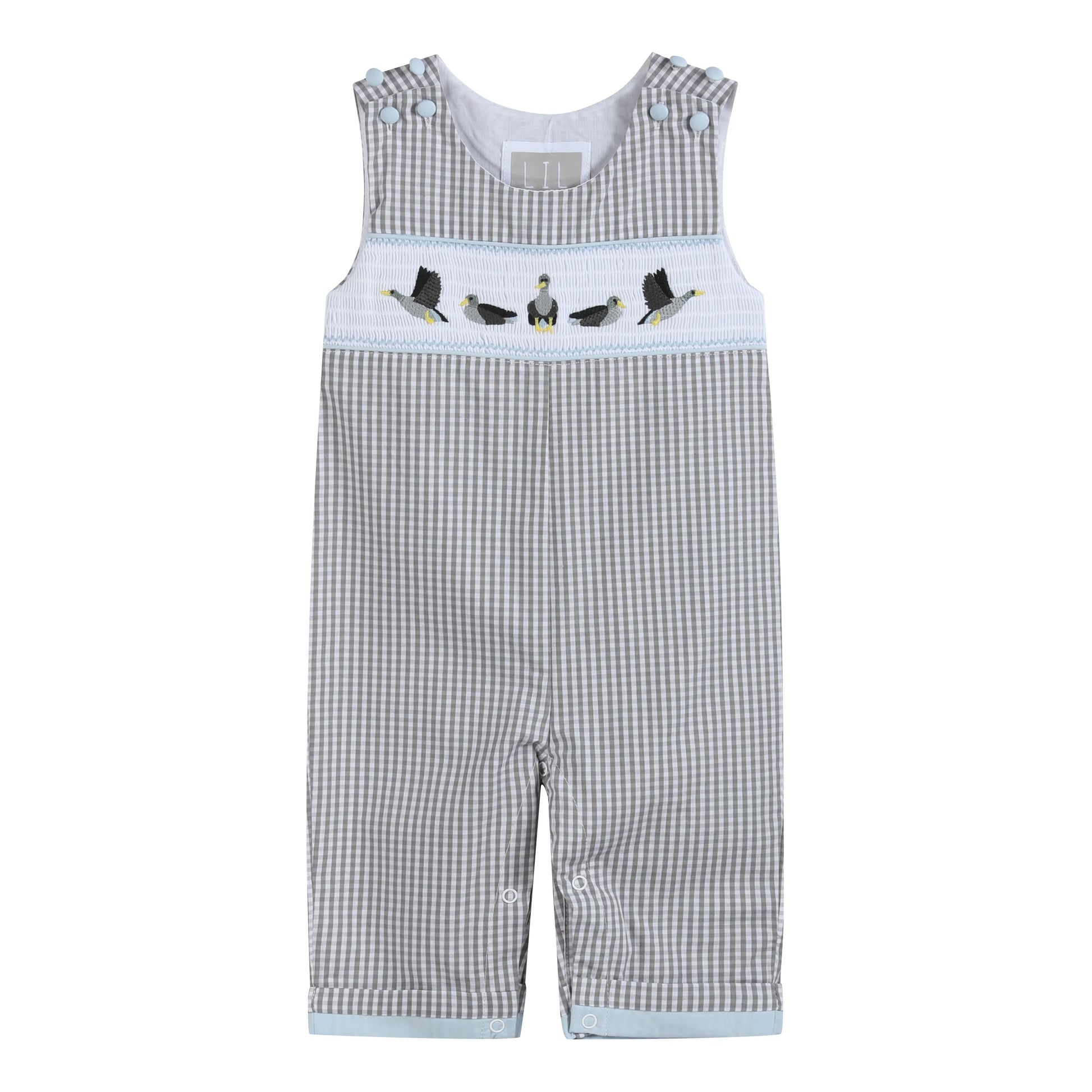 Light Gray Mallard Smocked Overalls