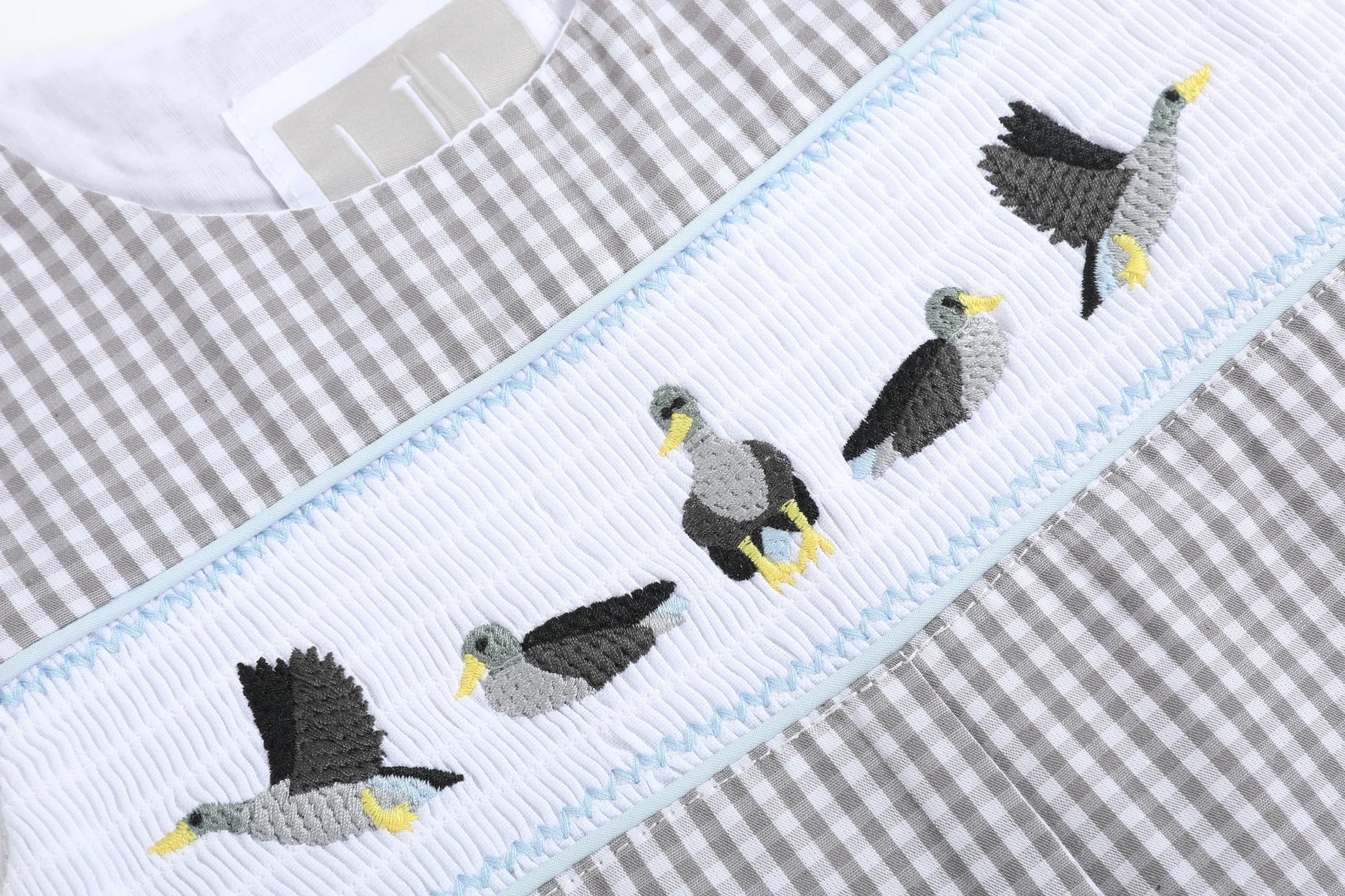 Introduce a whole lot of cuteness into his closet with these Light Gray Mallard Smocked Overalls – the perfect outfit for your little duckling! Featuring charming smocking on the chest and adorable embroidered mallards, these overalls are simply 'duck'tastic. Make a splash with style as your sweet boy waddles through the day in this irresistibly cute ensemble!