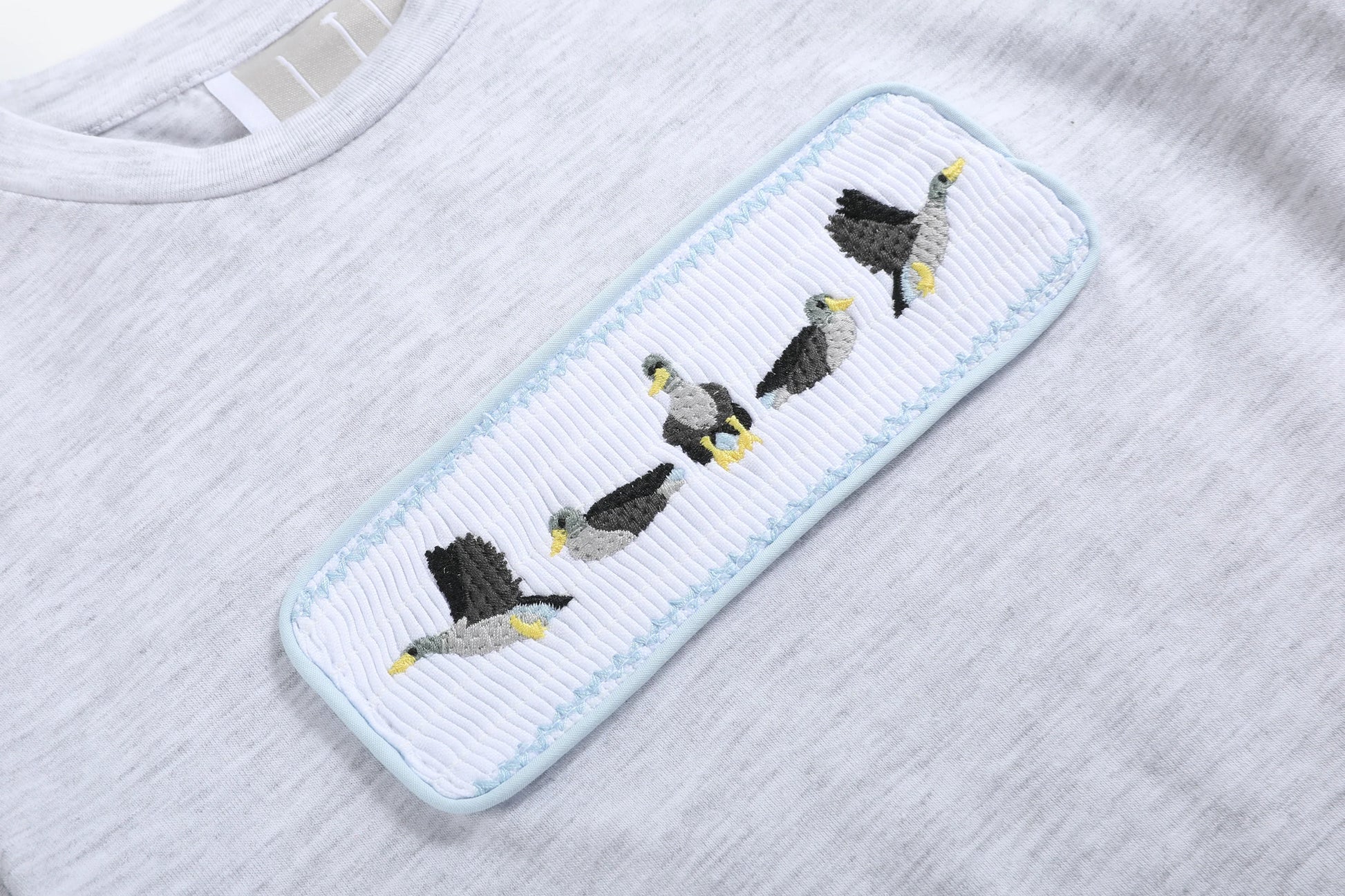 This Light Gray Mallard Smocked Shirt and Shorts Set is perfect for your little adventurer. The gray shirt features a smocked panel with beautifully embroidered mallards, adding a touch of nature-inspired charm. Paired with classic gray gingham shorts, this set combines timeless style with everyday comfort. Ideal for family outings, special occasions, or casual wear, it’s a must-have for any season.