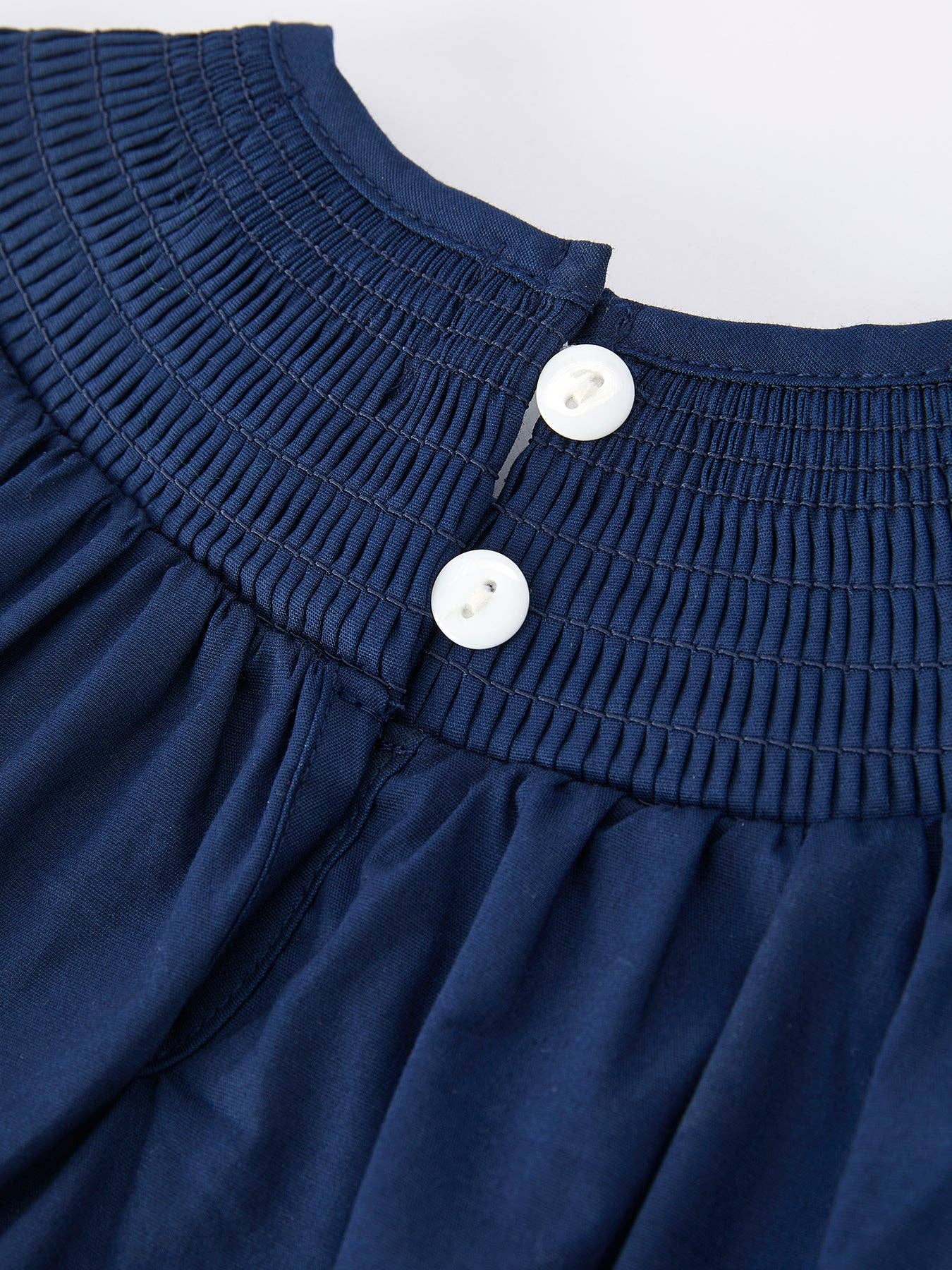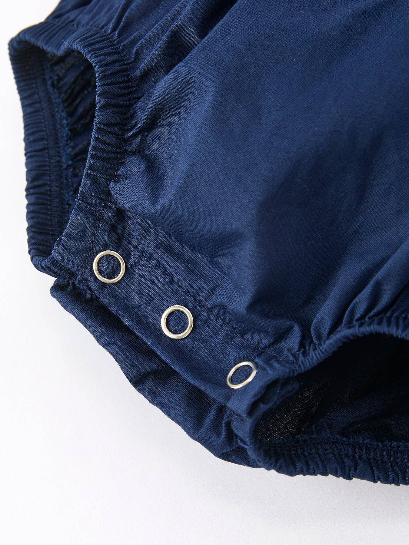 Celebrate the holiday season with this charming Navy Blue Nativity Smocked Embroidered Baby Girls Christmas Romper. Featuring delicate smocking and exquisite embroidery of the nativity scene, this romper adds a meaningful touch to festive gatherings. Crafted for comfort and style, it keeps your little one cozy while making holiday memories truly special. Perfect for photos and family celebrations, this romper blends tradition with adorable design.